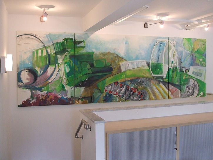 Objekt Komptech, Acryl/Lein, 4 x 1.10 x 1.30