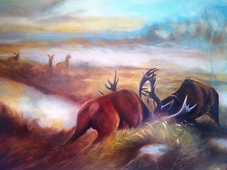 Hirsch in Brunft – Acryl auf Leinen 1.30 x 0.90