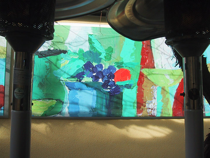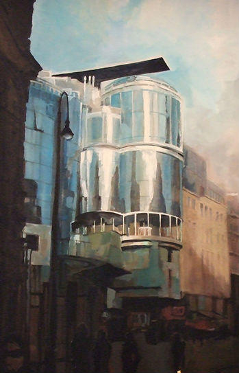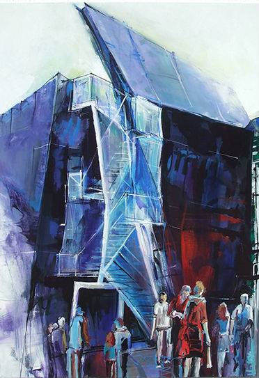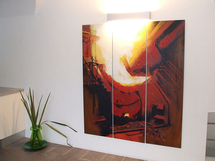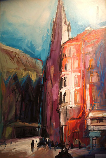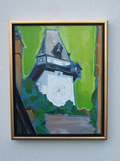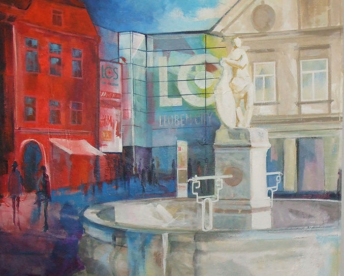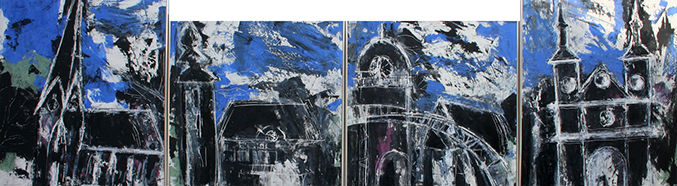 Stadtmotiv Leoben, Acryl/Leinen, 3 x 1.25 x H 2.80