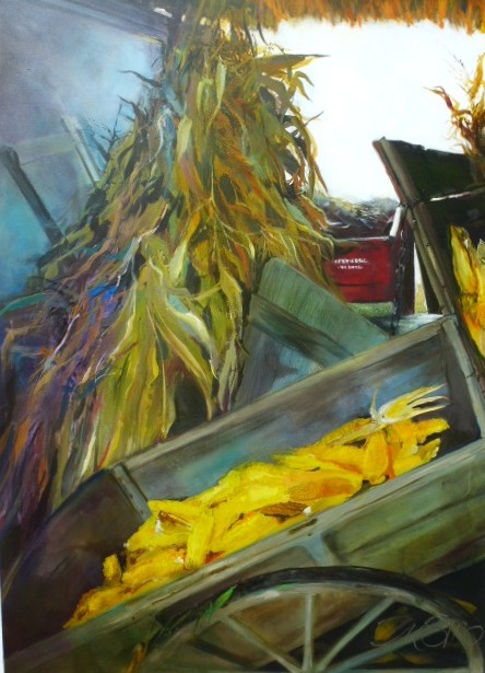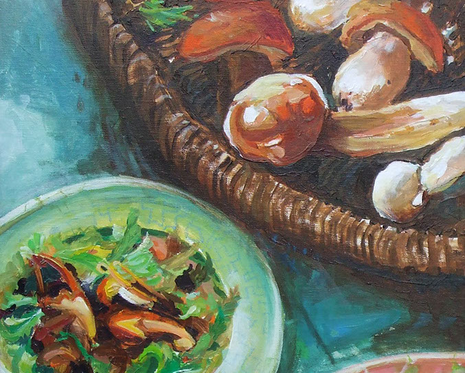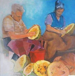 Kürbisernte, Acryl/Leinen, 1.00 x 1.00