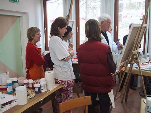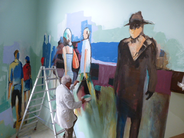 Acryl auf Mauerflächen Begegnung ca. 6.50 x 4.00 Höhe