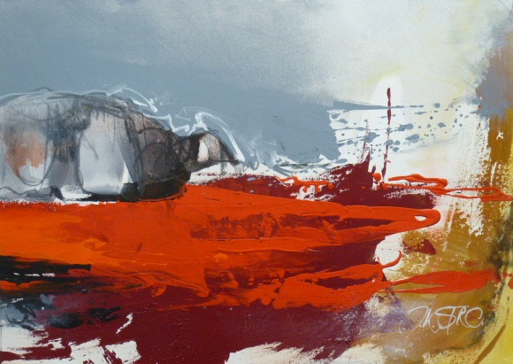 Impressionen, Bild grau/rot, 2.00 x 1.00
