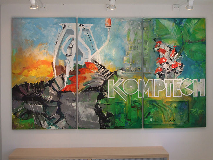 Objekt Komptech, Acryl/Lein, 4 x 1.10 x 1.30