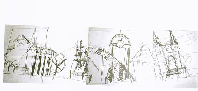 Stadtansichten Leoben, Kreideschnitt, 2.40 x 0.70