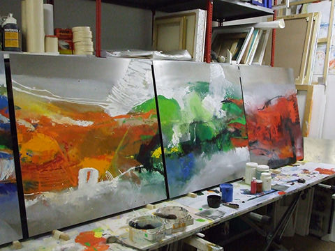 Impressionen, Acryl/Leinen, Triptychon, 3 x 0.50 x 0.70